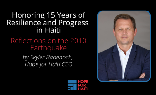Several weeks after the earthquake, I found myself boarding a U.S. military flight out of Haiti. I had been working as a first responder near the quake’s epicenter in Carrefour, sleeping in a 10,000-person tent encampment alongside heroic Haitian doctors, nurses, and first responders who gave everything they had to help others. Exhausted, heartbroken, and forever changed, I sat on that plane overwhelmed by emotion and made a promise to spend the next 20 years of my life working to empower and resource local community leaders in Haiti.Serving as the CEO of Hope for Haiti has allowed me to continue to fulfill that promise in ways I could never have imagined. Before, during, and after the earthquake, Hope for Haiti’s work has remained steadfast in its mission: to provide resources and training to those shaping Haiti’s future. From entrepreneurs creating jobs and building businesses, to nurses and doctors improving health outcomes with unwavering compassion, to young scholars who embody hope—like one of our scholarship recipients who recently graduated college and is now beginning her career as a nurse, determined to serve her community—and to families striving for a brighter future for their children, we are committed to empowering and resourcing Haiti’s changemakers.